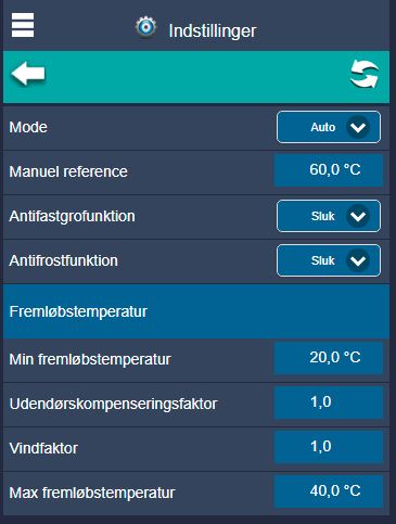 Når vinden er hård har det betydning for temperaturen inde, og det er vigtigt at have med i sine overvejelser. Her kan du indstille hvor mange grader systemet skal hæves i forhold til hvor meter per sekund det blæser.