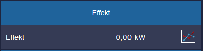 ”Effekt” Viser den aktuelle effekt og Trykkes der på grafknappen vises grafen for hvordan effekten har udviklet sig historisk. Her kan du vælge om du vil se for de sidste 8 timer, det sidste døgn, den sidste uge, den sidste måned eller det sidste år