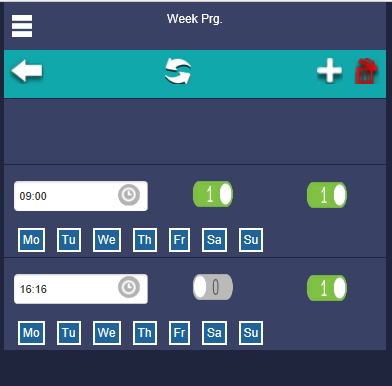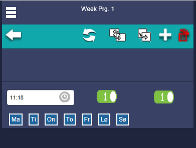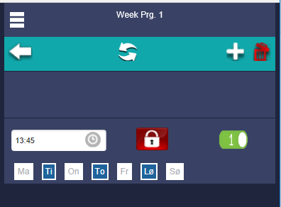 På den øverste barer er der mulighed for at oprette et ugeprogram for tænd/sluk.