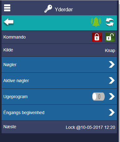 På øverste barer kan du oprette en engangs begivenhed for dørlås styringen.