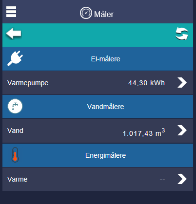 Ved tryk på knappen ”Pile” får du overblik over din el-målere, vandmålere, energimålere.