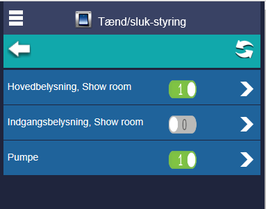Tænd/sluk-styring- oversigt over el apparater tilsluttet tænd/sluk
