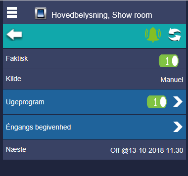 På øverste barer kan du oprette en engangs begivenhed for tænd/sluk styringen.