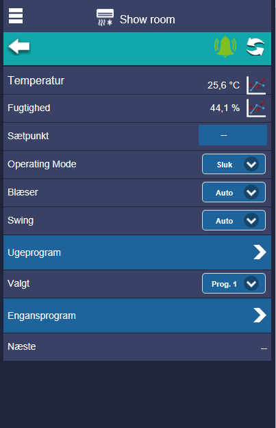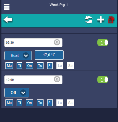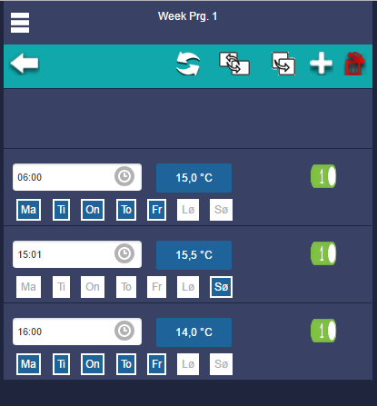 På den øverste barer er der mulighed for at oprette et ugeprogram for varmestyringen.