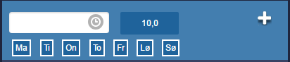 Ved tryk på knappen ”tilføj” tilføjes en ny programlinje, som tillader at indstille et ønsket tidspunkt og dage for hvornår setpunktet træder i kraft. Setpunktet vil være aktivt indtil næste setpunktsændring (programlinje) tager over. Ønsker man forskellige tider på forskellige dage, tilføjes der programlinjer med indstillinger for den ønskede tid.
