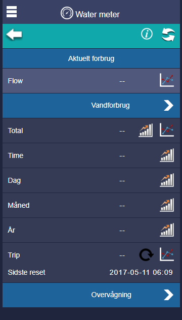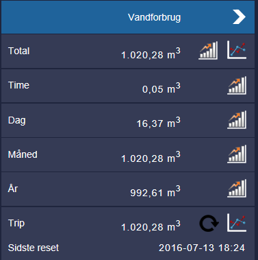 ”Vandforbrug” Viser den aktuelle overblik over en periode.