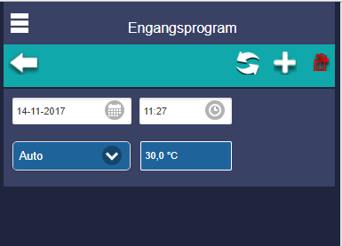 Ved tryk på knappen ”tilføj” tilføjes en ny programlinje, som tillader at indstille en ønsket temperatur, samt tidspunkt og dage for hvornår setpunktet træder i kraft. Setpunktet vil være aktivt indtil næste setpunktsændring (programlinje) tager over. Ønsker man forskellige temperaturer på forskellige dage, tilføjes der programlinjer med indstillinger for den ønskede temperatur.