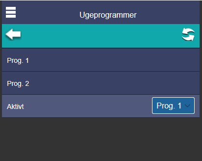 ”Ugeprogram” ved tryk på ugeprogrammer åbnes administration for indstilling af ugeprogrammer.