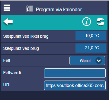 ”SÆTPUNKT VED BRUG” – så defineres temperaturen i den tidsperiode hvor der er oprettet en begivenhed i kalenderen.